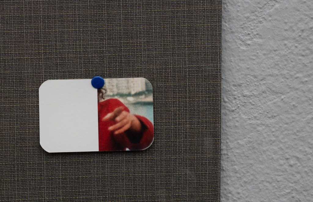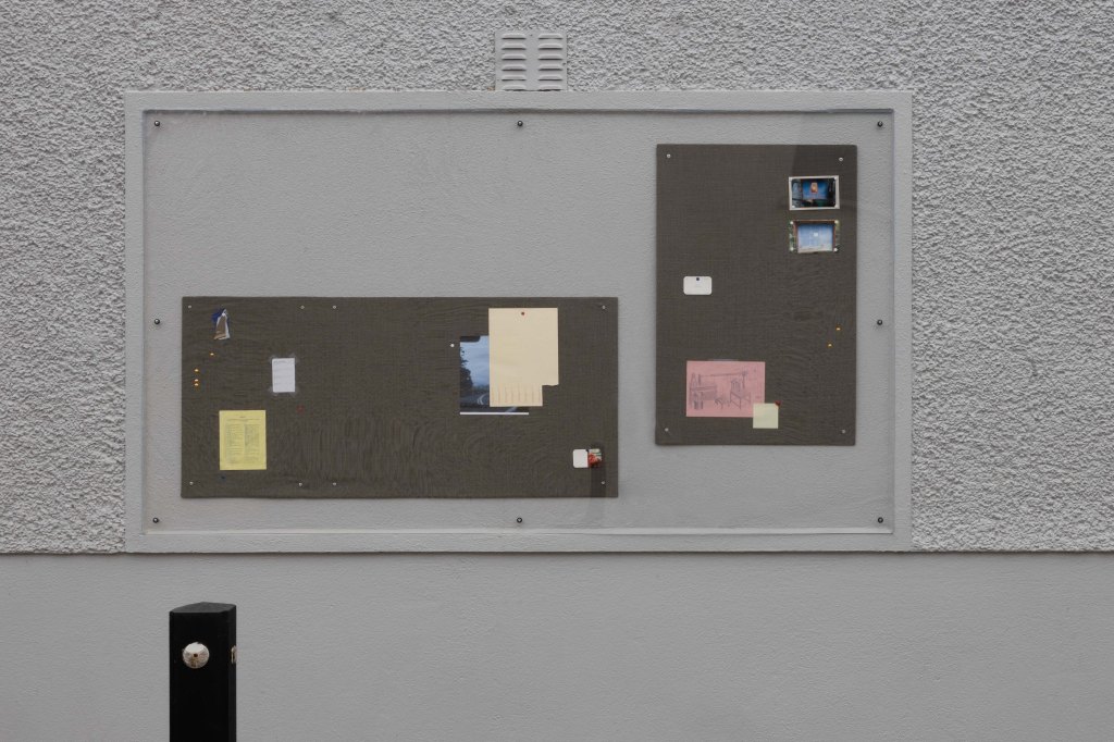 Materials: perspex, medium density fiberboard, poly-wool fabric, paper, card, post-it note, washi-tape, thumb-tacks, 2 high-gloss photo prints, screws, washers.
